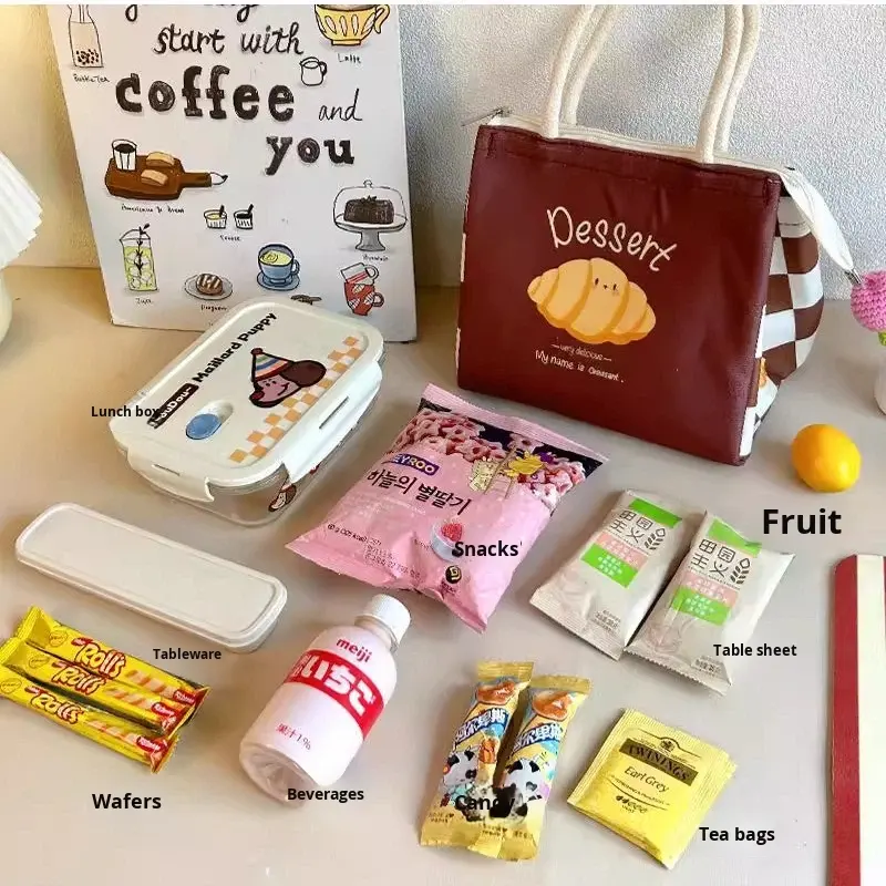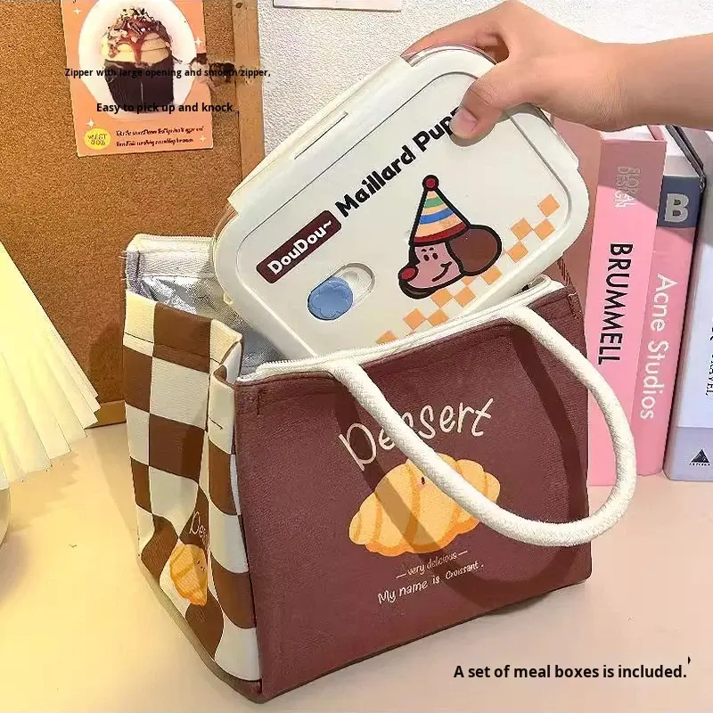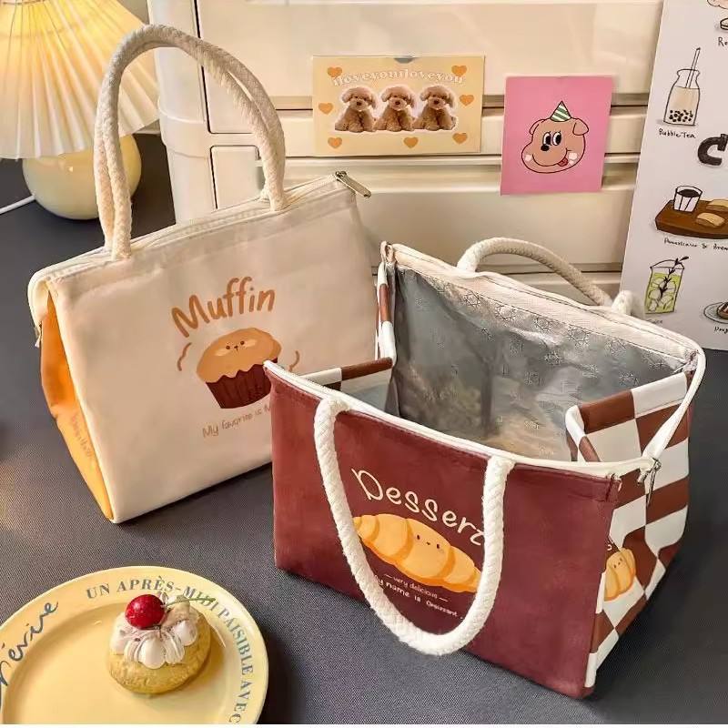 Lonchera Térmica de Poliéster con Diseño de Dibujos Animados, Cierre de Cremallera, Apta para Alimentos, para Trabajadores de Oficina, Mujeres, Desayuno y Viajes