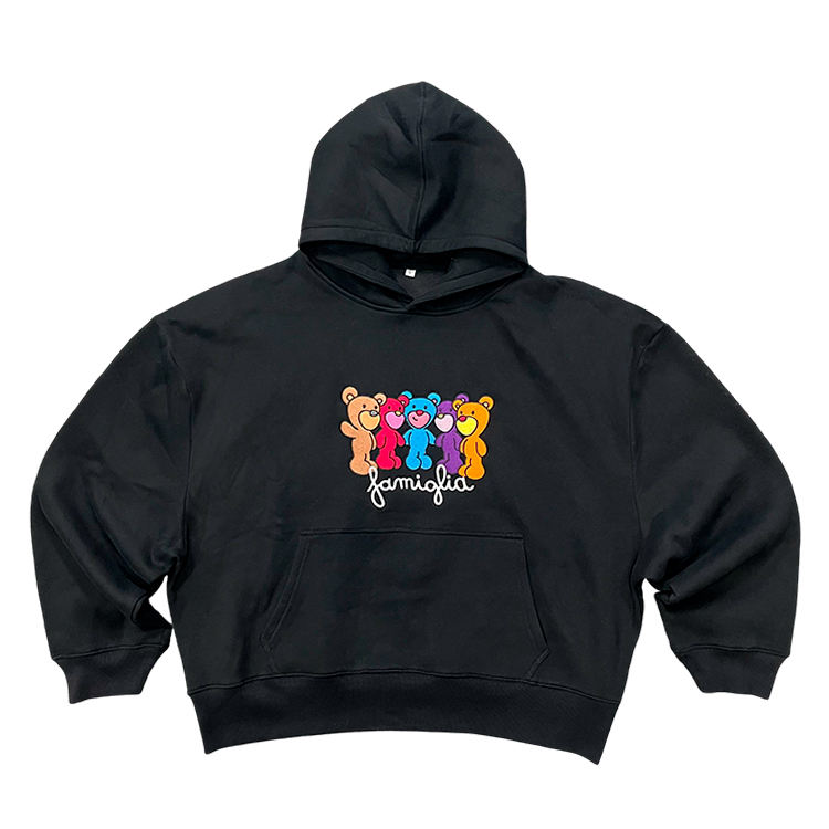 Sudadera con Capucha de Punto con Cuello Redondo y Estampado de Dibujos Animados Personalizado, Logotipo Bordado, Algodón Grueso, Resistente al Viento, Talla Grande