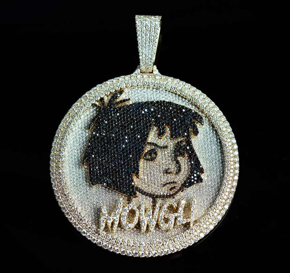 Colgante Personalizado de Dibujos Animados, Colgante de Personaje con Incrustaciones de Diamantes, Joyería Hip Hop, Colgante de Diamante Moissanita, Collar con Medallón Redondo 925