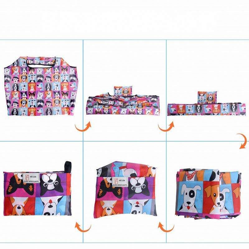 Bolsa de Compras Plegable Personalizada con Diseño de Dibujos Animados, Ecológica, Reutilizable, Impermeable, Plegable en un Bolsillo