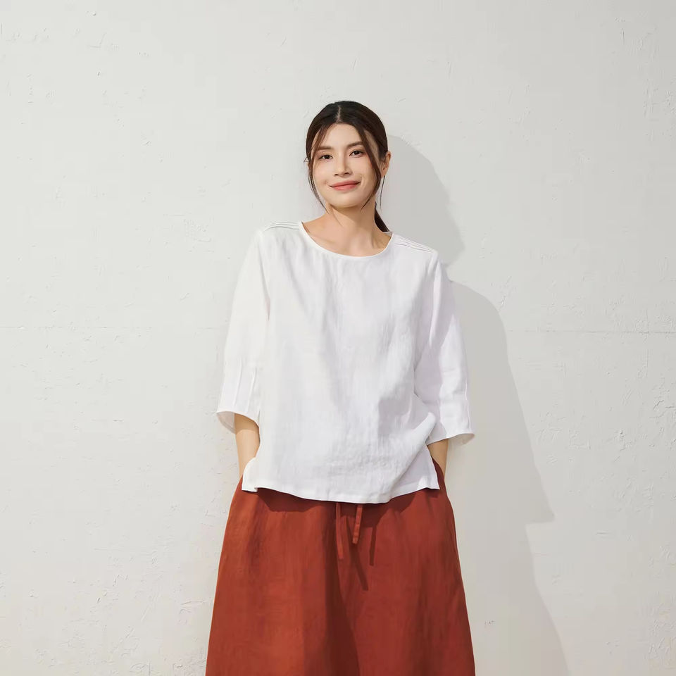 Nombre del producto:Tops de lino blancos, blusa de lino, tops de lino casuales,