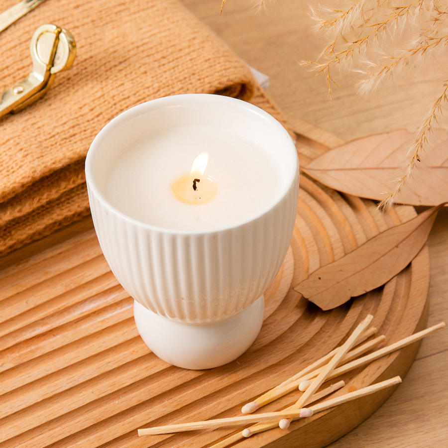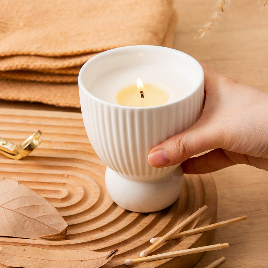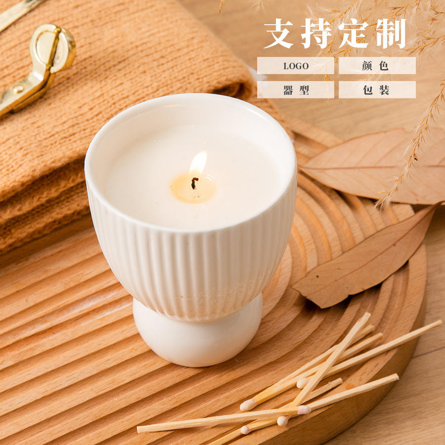 Vaso de cerámica personalizado para velas con diseño de rayas, vacío, para velas aromáticas, uso comercial y regalos.