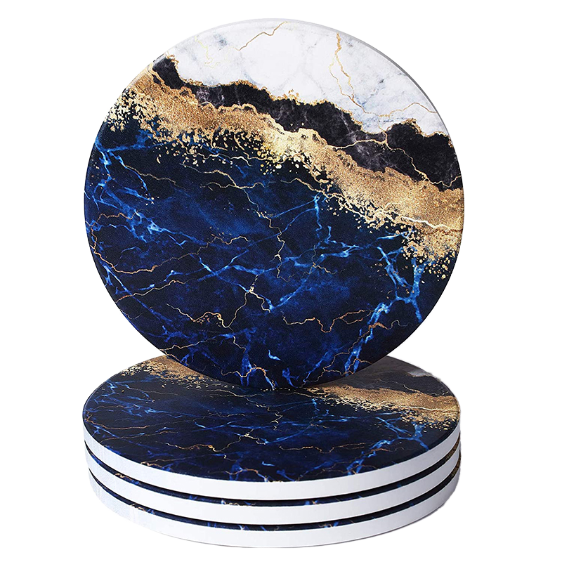 Juego de 4 Posavasos Redondos de Cerámica Ecológicos Absorbentes de 8 mm de Grosor con Soporte de Diseño Creativo