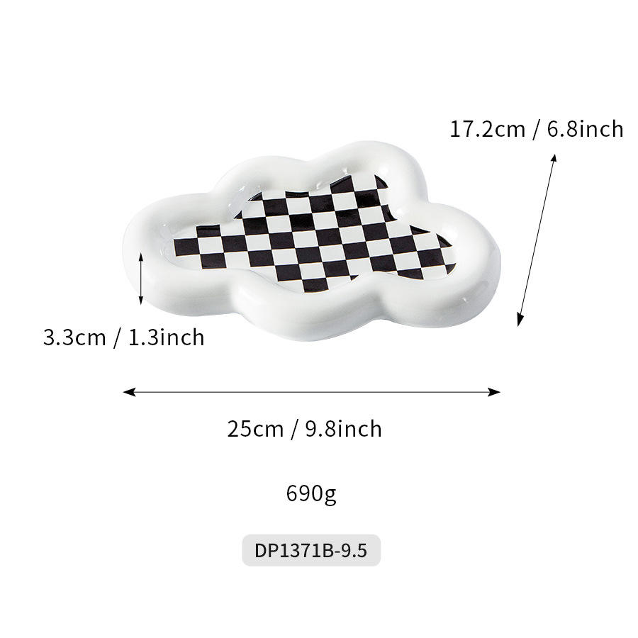 Bandeja de Cerámica Personalizada con Forma Irregular y Patrón de Tablero de Ajedrez de 25 cm, Plato Decorativo para Café y Té de Hotel DP1371B-9.5