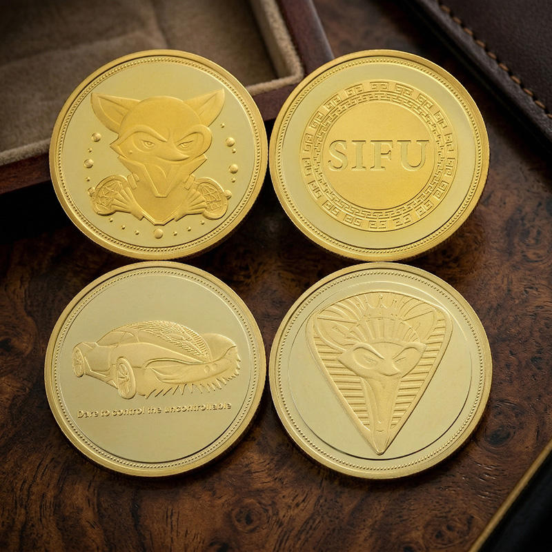 Moneda Conmemorativa con Logotipo Grabado en Relieve y Letras Chapadas en Oro