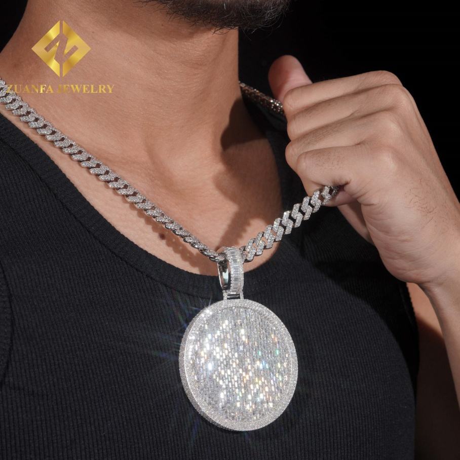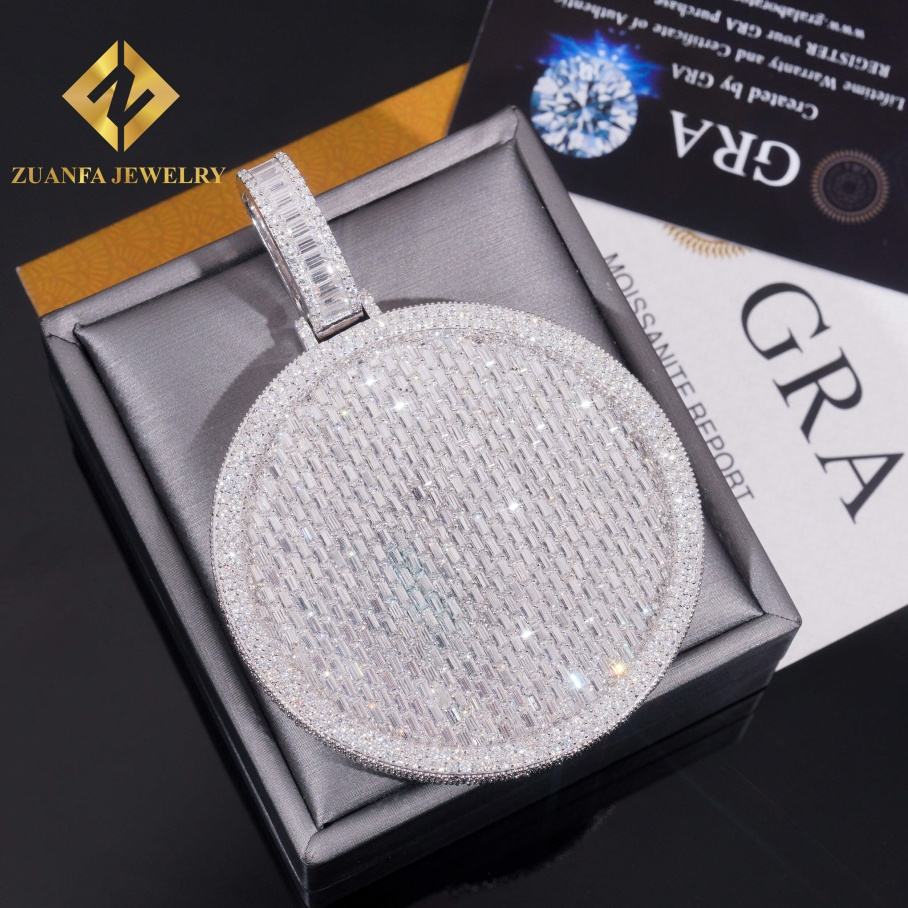 Dijes Personalizados, Colgante Redondo de Plata 925 con Diamante Moissanite VVS, Joyería que Pasa el Test de Diamantes, Colgante Hip Hop para Hombre