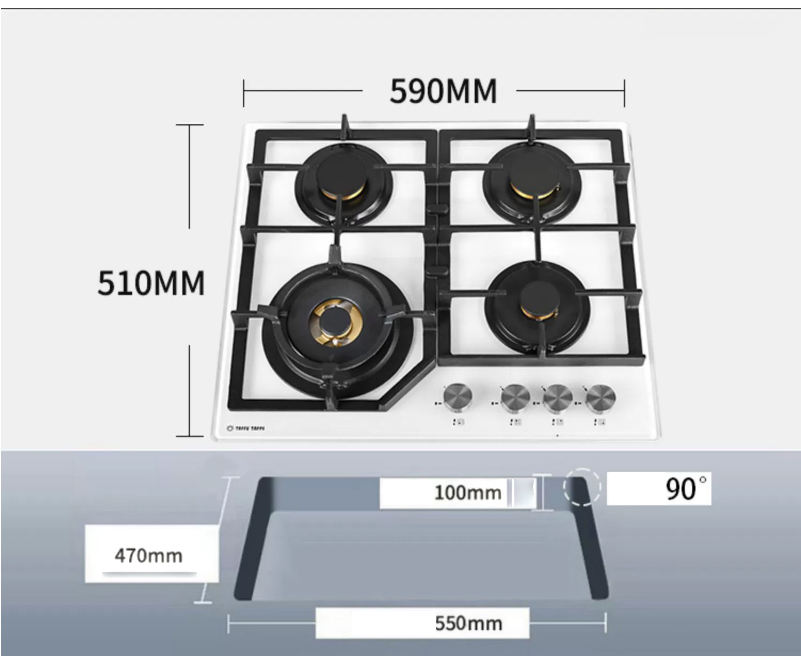 Estufa de cocina de gas integrada de supermesa de cocina de proveedor dorado barata personalizada, precio razonable de venta, estufa de cocina de Gas de 4 quemadores