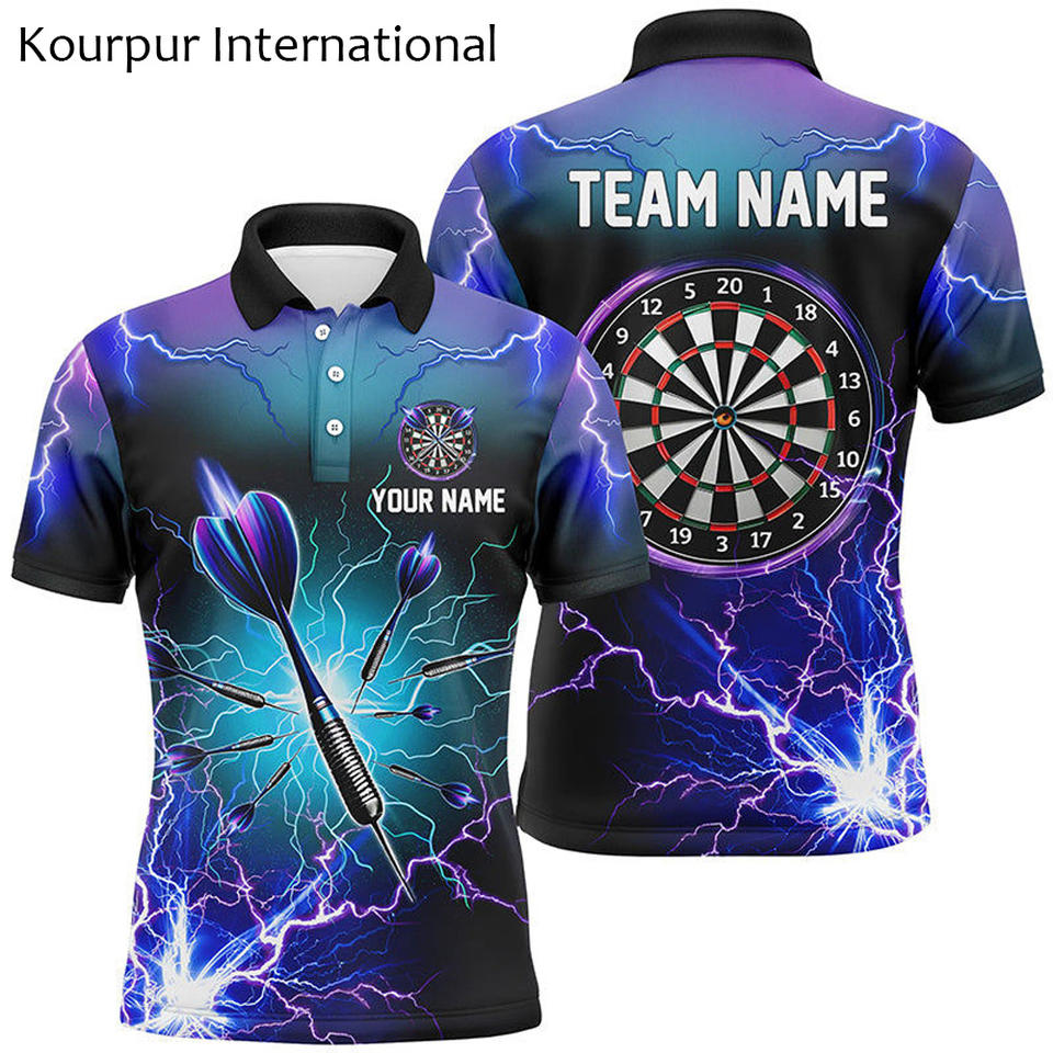Personalizado barato secado rápido sublimación hombres jerseys profesional dardos desgaste poliéster camisas Jersey con bolsillo