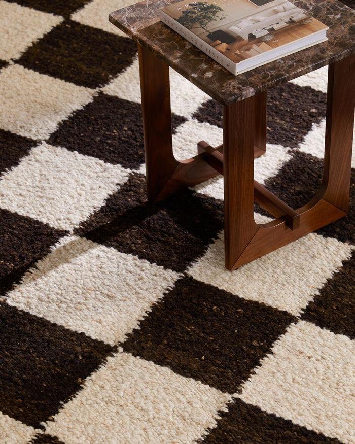 Alfombra de cuadros personalizada, Alfombra tejida plana hecha a mano de Chocolate, Alfombra de producción ética duradera de lana de Nueva Zelanda de 10mm para sala de estar