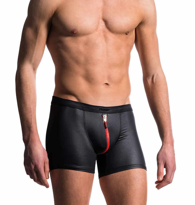 Calzoncillos bóxer divertidos para hombre, estilo atrevido, de tela de encaje transparente, con cremallera roja.