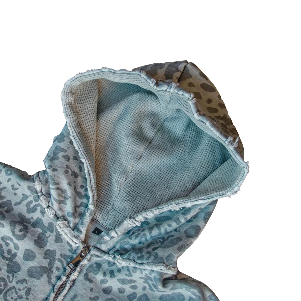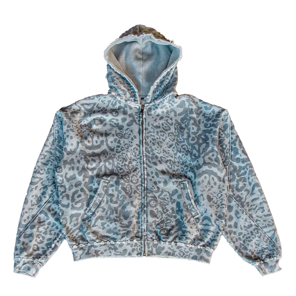 Sudadera con Capucha Unisex con Estampado de Leopardo y Guepardo, Estilo Retro Urbano, Otoño, 100% Algodón Grueso, Doble Cremallera, Fabricante