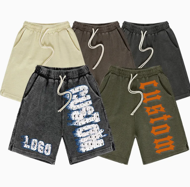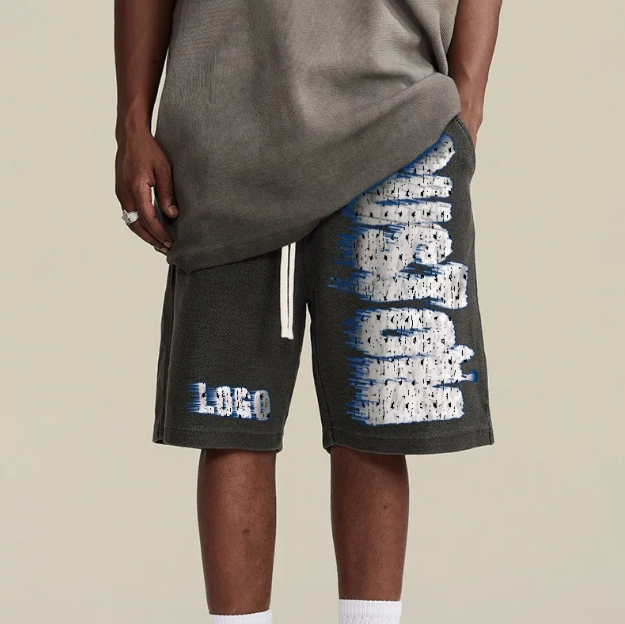 Personalizado Chenille bordado Logo apliques de alta calidad 100% algodón de peso pesado pantalones cortos sueltos casuales para los hombres