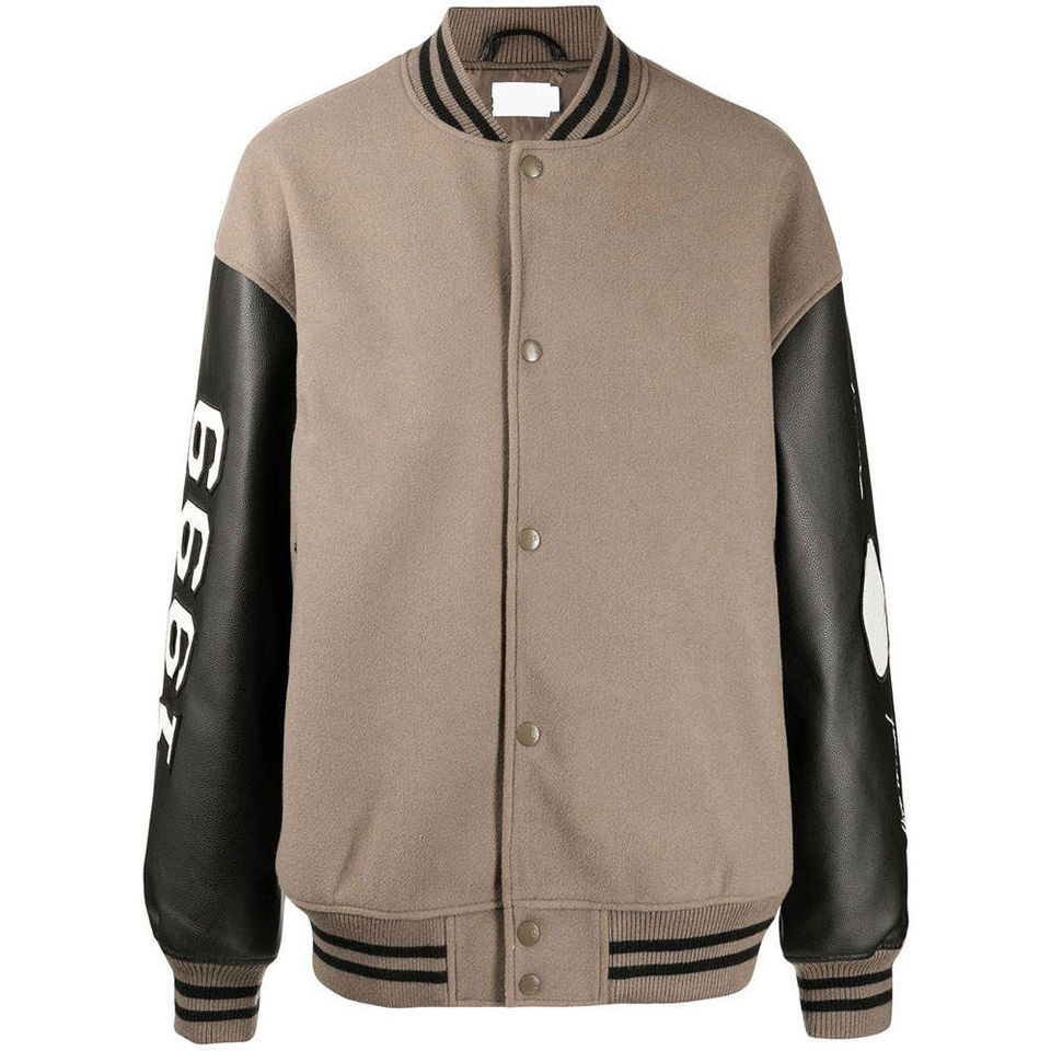 Chaqueta universitaria personalizada con logotipo de chenilla bordada para hombre con mangas de cuero, chaqueta de béisbol de manga larga para hombre a precio bajo al por mayor