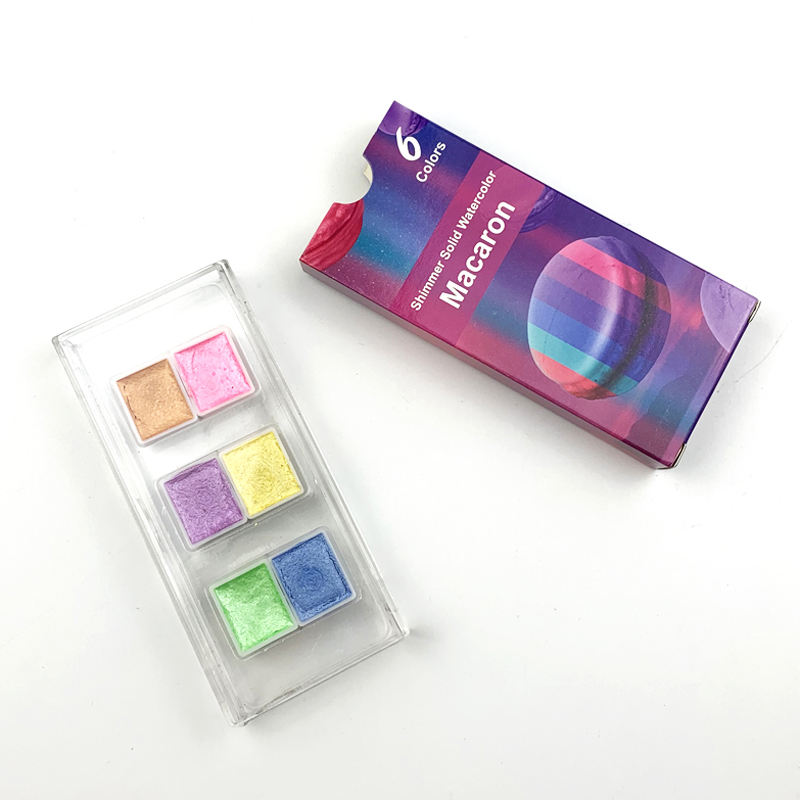 Acuarela sólida metálica brillante de 6 colores concentrados personalizados para niños en caja de plástico