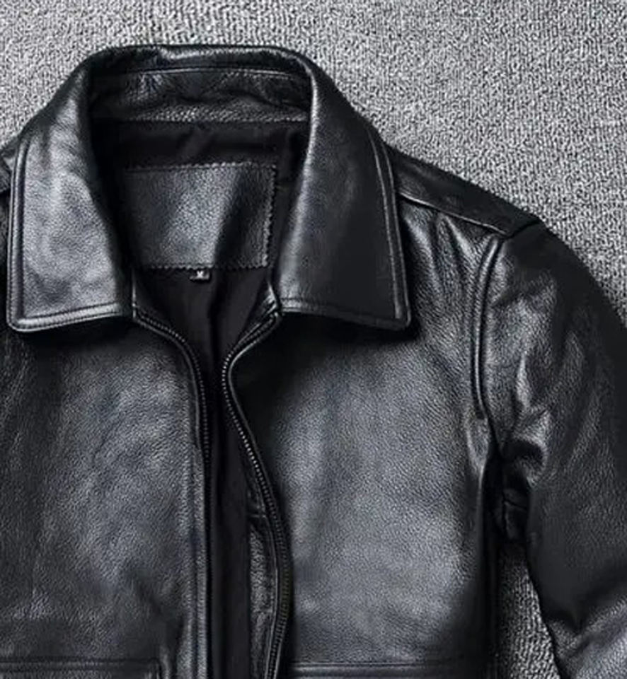 Chaqueta de Cuero Clásica Personalizada Flight A2 para Hombre, Abrigo de Piel de Oveja Genuina Negra para Otoño-Invierno, Chaqueta de Piel de Vaca Real para Hombre
