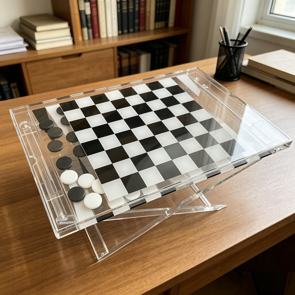 Mesa de Ajedrez Plegable de Acrílico Transparente Personalizada, Relojes de Ajedrez, Tablero de Juego Plegable Portátil para Uso en Interiores y Exteriores, Diseño Moderno