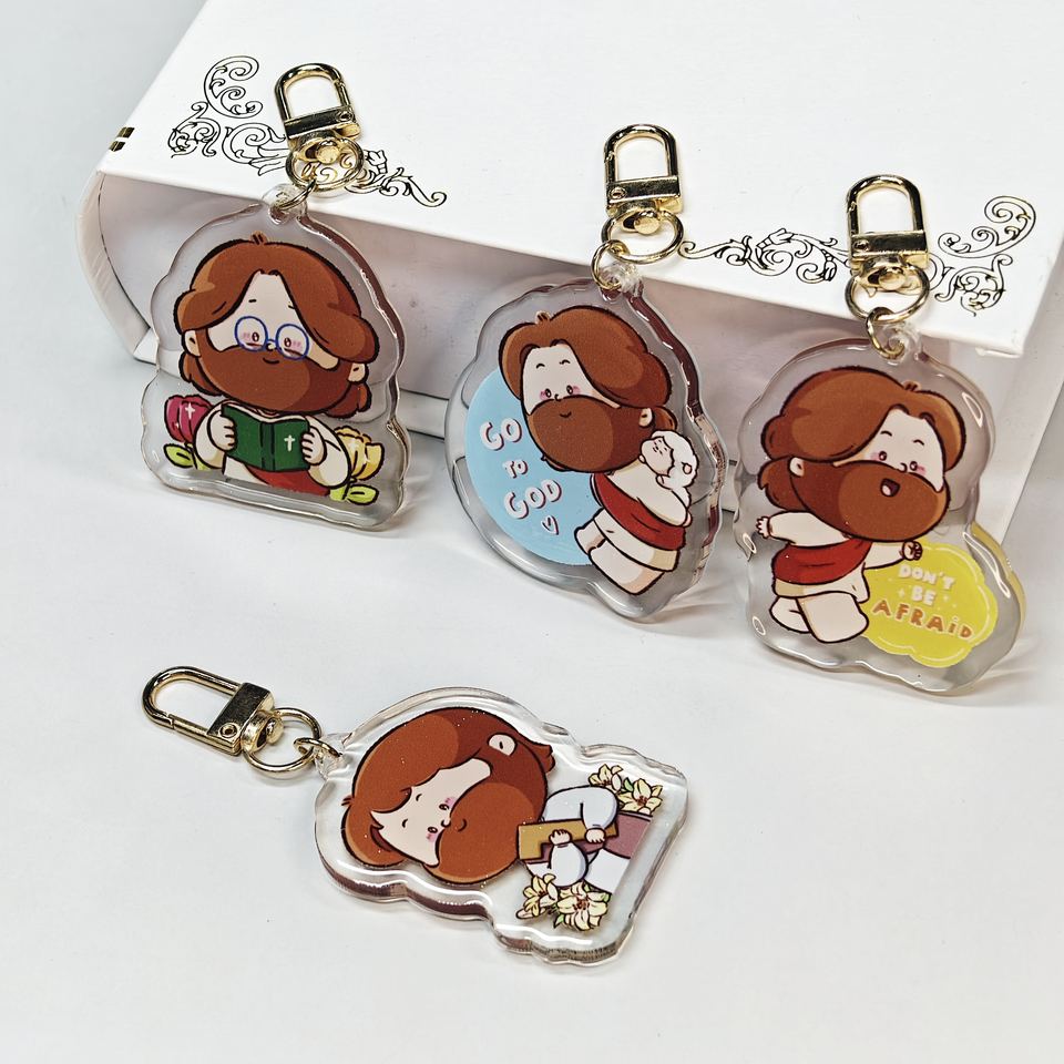 Llavero de acrílico transparente personalizado con dije de epoxi de dibujos animados, soporte de metal de aleación, logotipo personalizado, llavero de acrílico de anime