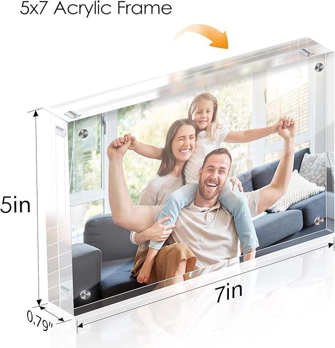 Marco de Fotos Magnético de Acrílico Transparente Personalizado, Doble Cara, Imán Fuerte, 5x7 4x6, Resistente a los Rayos UV, para Escritorio
