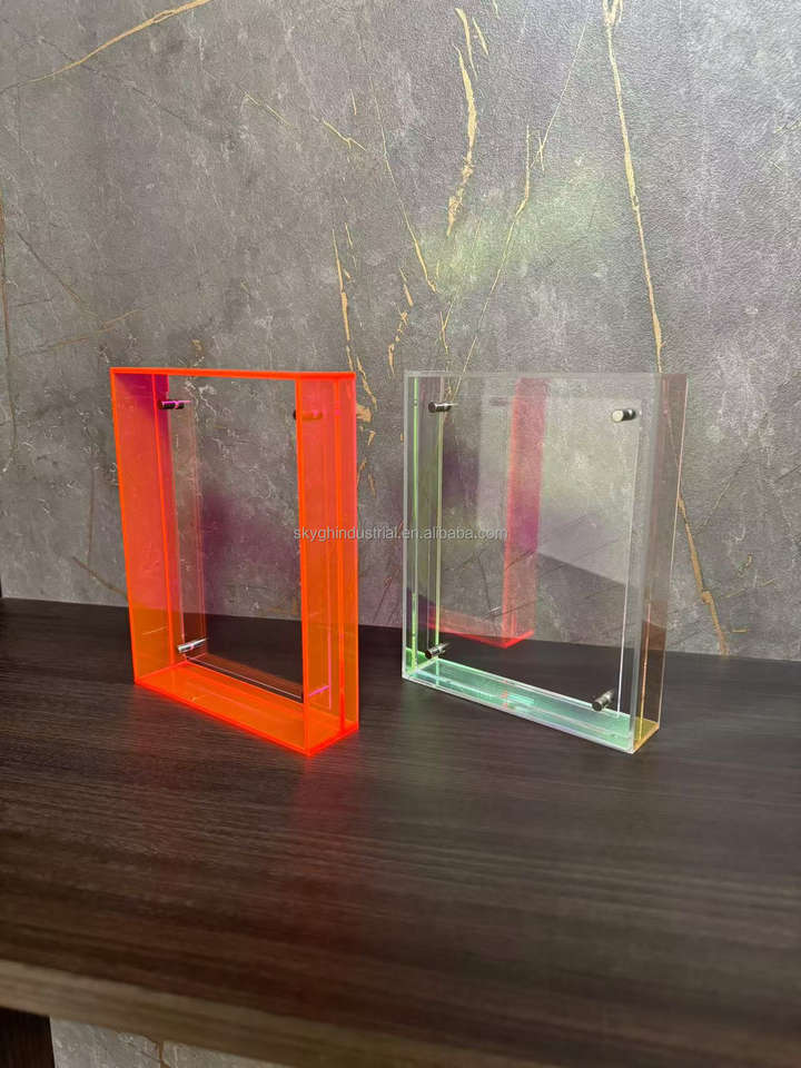 Marco de fotos de acrílico transparente personalizado Pantalla de imagen magnética sin marco de doble cara para uso en el hogar, hotel o tienda de escritorio