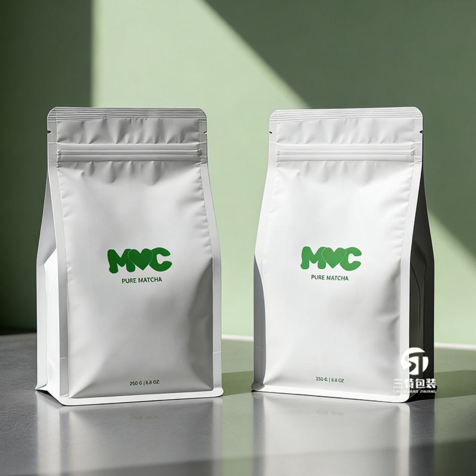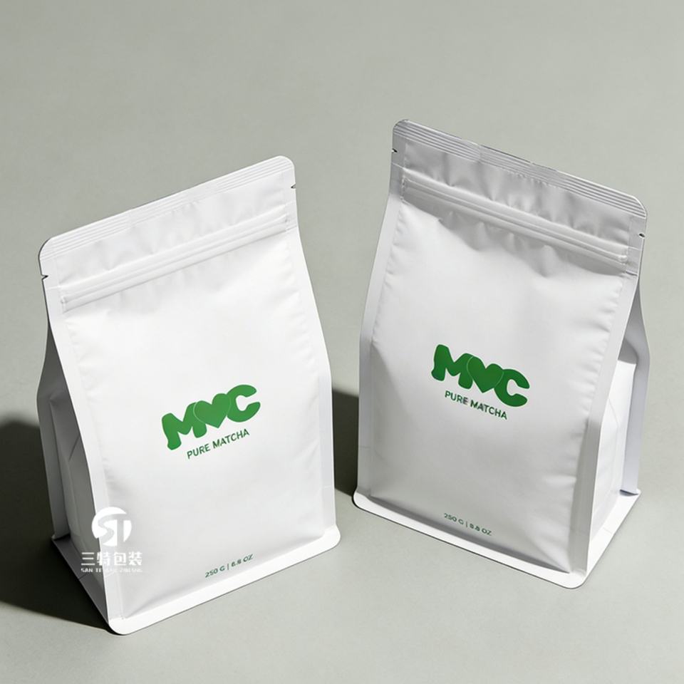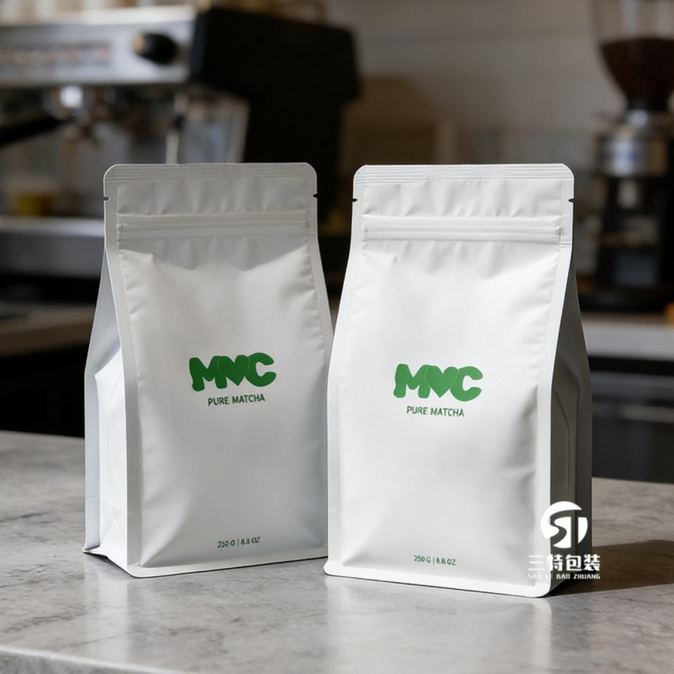 Nombre del producto:Bolsas de café con cierre de cremallera blanco de fondo plano de papel de aluminio con válvula