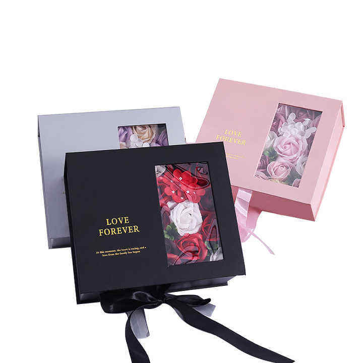 Cajas magnéticas de cartón personalizadas Coffret Cadeau Bijoux Fleur, caja de regalo de flores con tapa de ventana