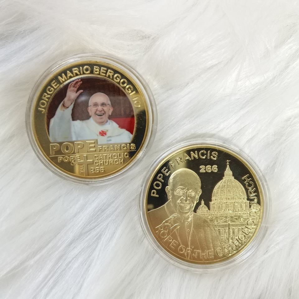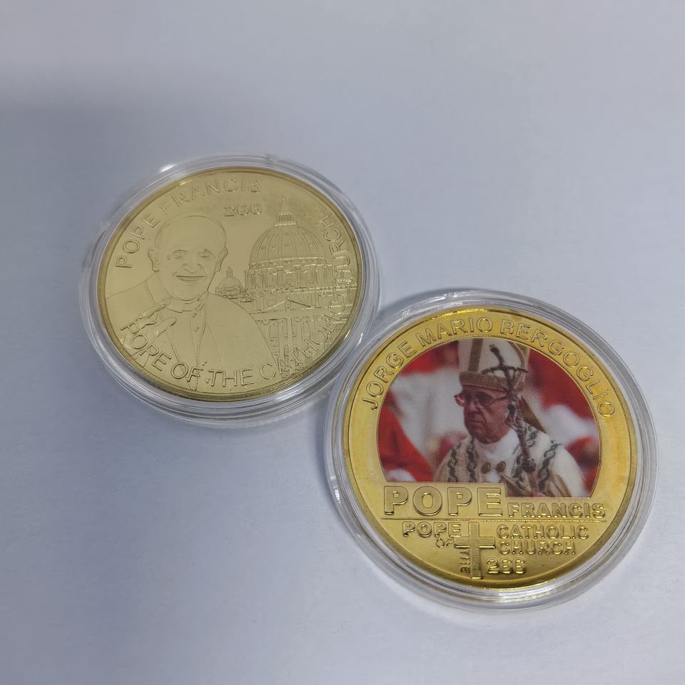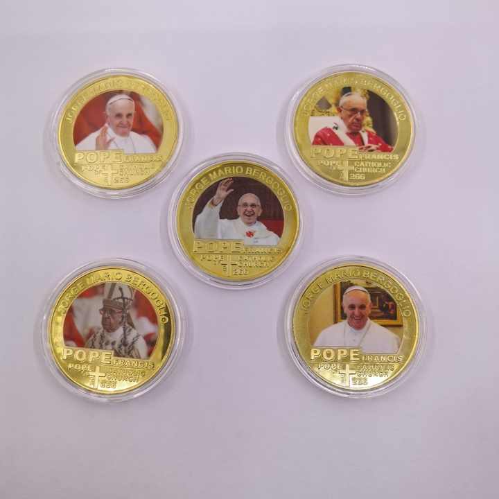 Moneda personalizada 5 Diseño Chapado en oro Hierro Metal Die-Casting Pope Roman Coin para recuerdos de aniversario