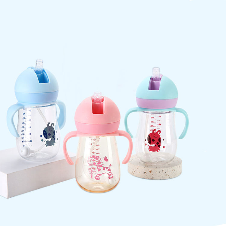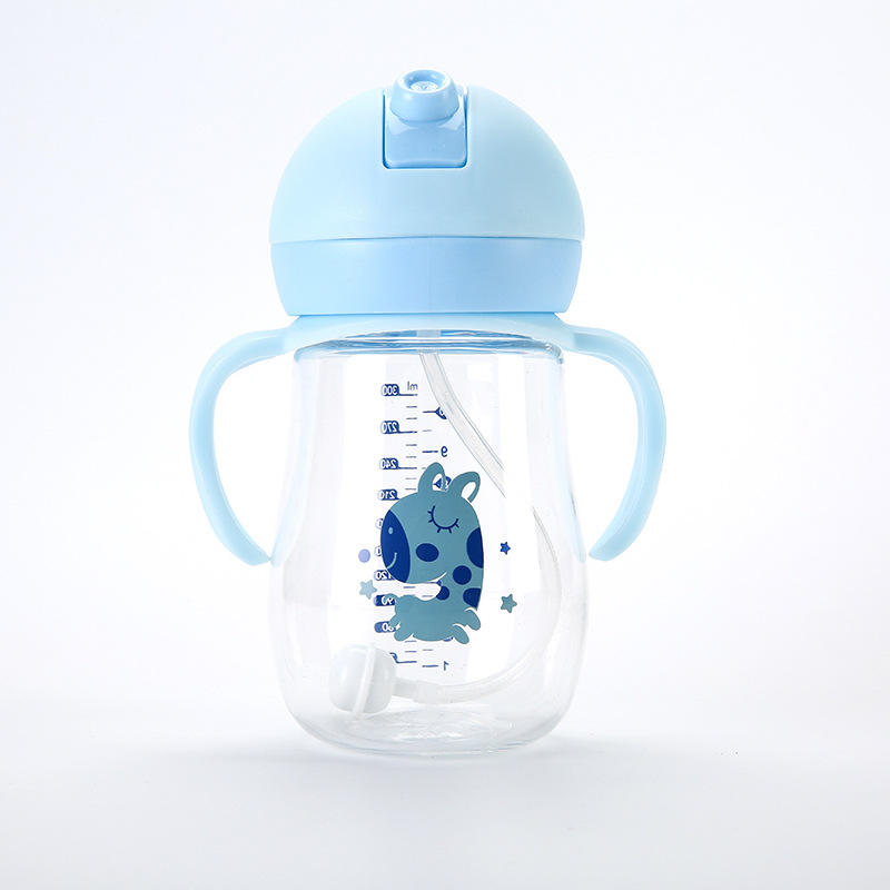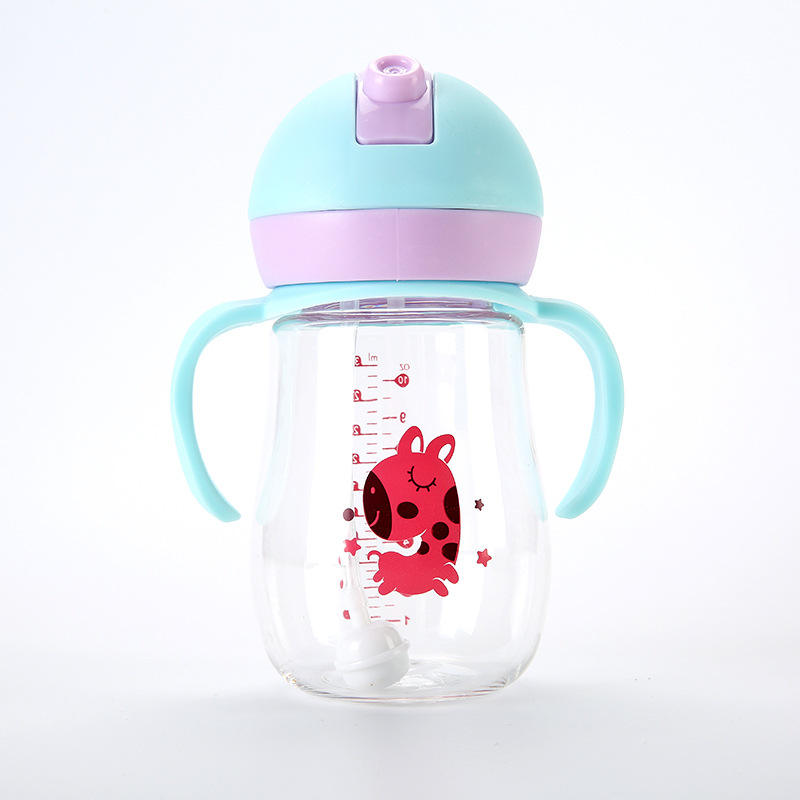 Botella DE AGUA DE PC plegable personalizada para bebé, niño pequeño y niño, Pajita anticólicos, mango cómodo, botella de agua para bebé destete