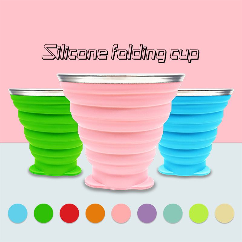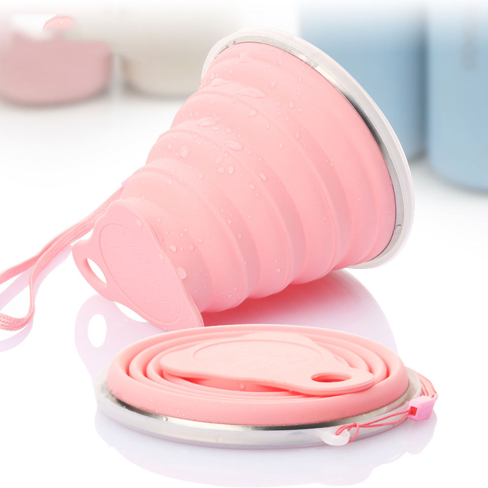 Taza de viaje plegable personalizada, taza retráctil para acampar, deporte al aire libre, portátil, de silicona para agua y café