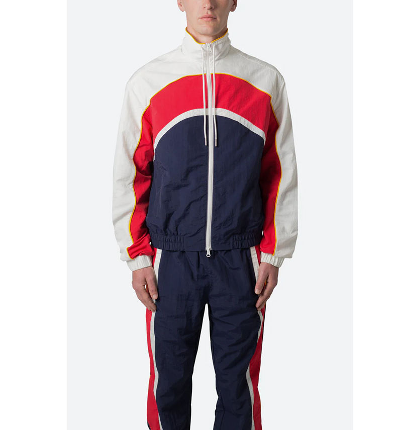 Conjunto de chándal cortavientos de nailon y poliéster ligero, chándal de concha blanda con bloque de color personalizado para hombre