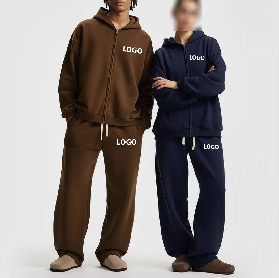 Conjunto Deportivo de Invierno con Camuflaje de Color Personalizado, Chaqueta de Algodón French Terry, Pantalones Jogger, Estampado de Patchwork, Chándal para Hombre