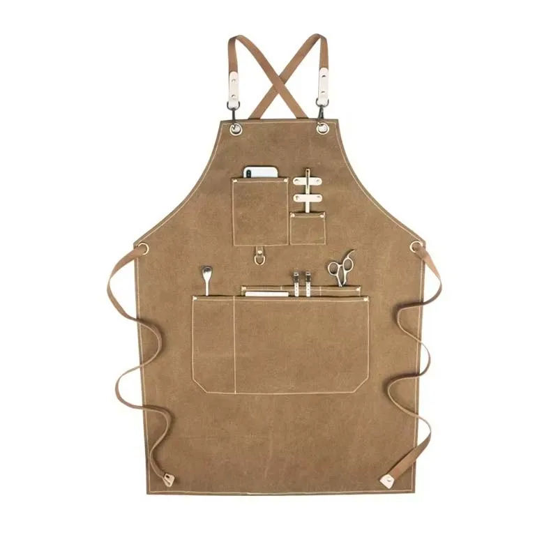 Delantal de trabajo de algodón de lona impermeable de color personalizado impreso con logotipo