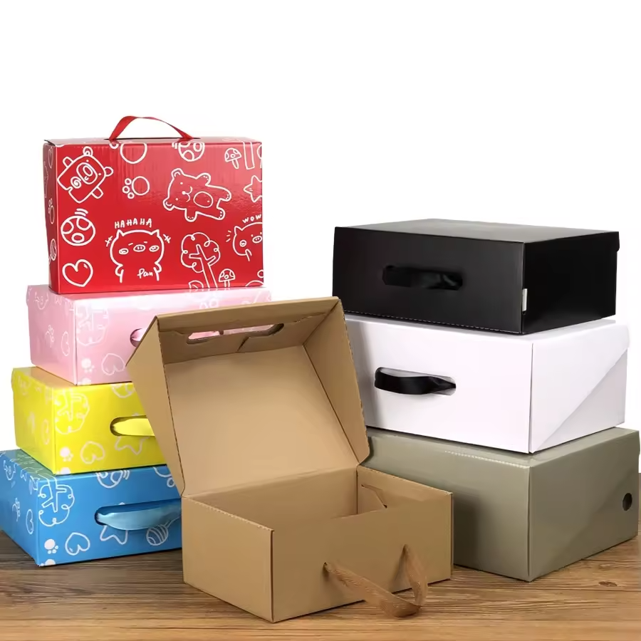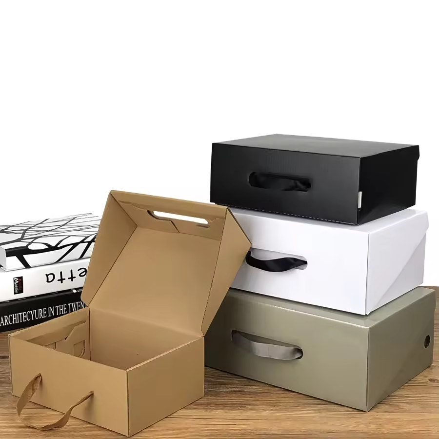 Caja de Embalaje Rígida de Cartón Corrugado de Color Personalizado, Caja de Regalo para Zapatos Portátil de Alta Gama, Impermeable, con Forro de Esponja