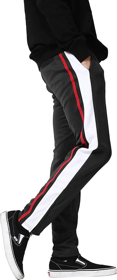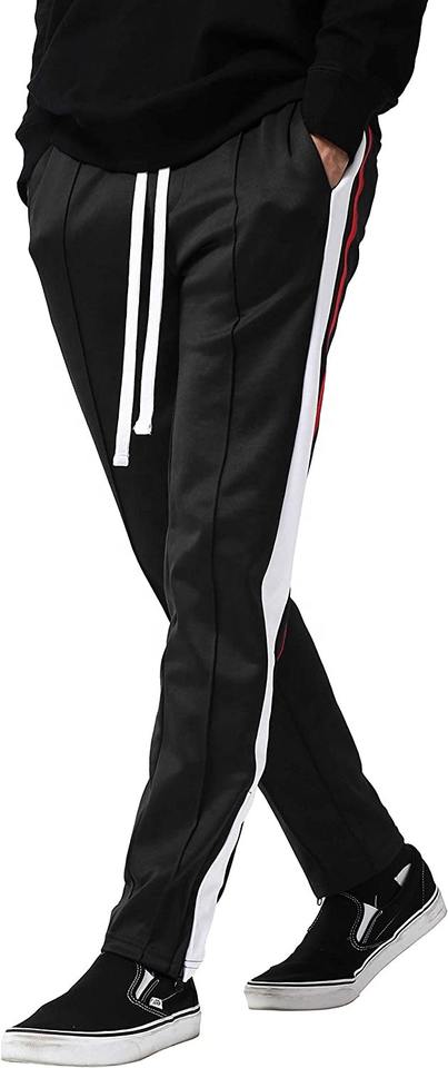 Pantalones de chándal deportivos de cintura alta personalizados para hombre, pantalones de chándal deportivos de lana de gran tamaño de algodón y poliéster con tiras de panel de color personalizado
