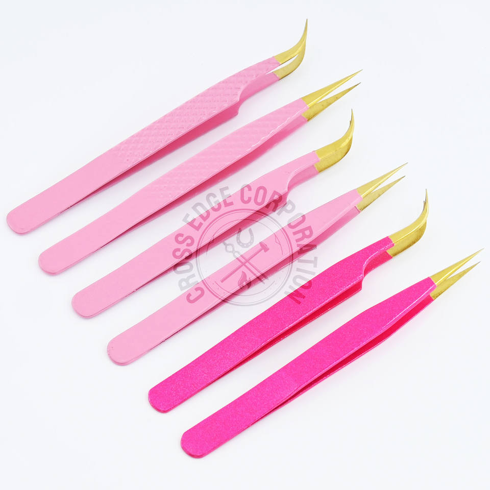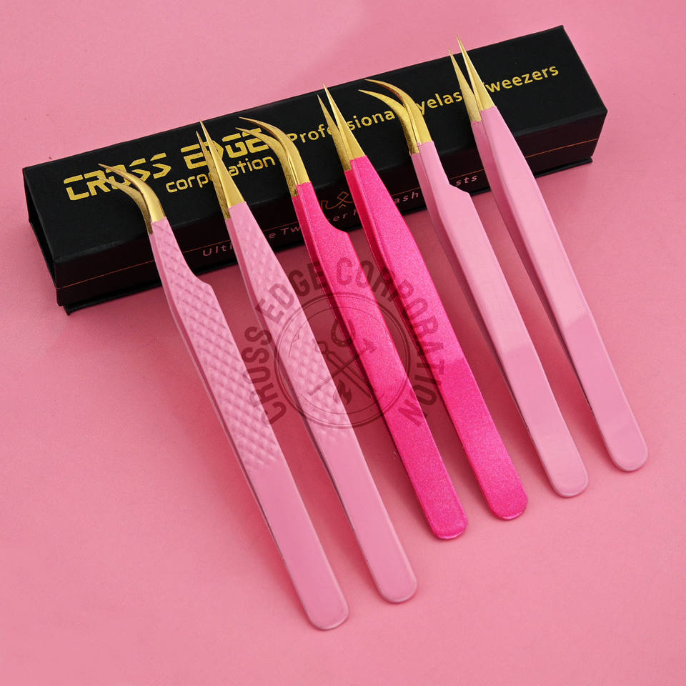 Pinza para Extensión de Pestañas con Punta de Fibra de Color Personalizado, 90 Grados, Volumen, Rosa, Acero Inoxidable, Herramienta de Precisión para Artistas de Pestañas