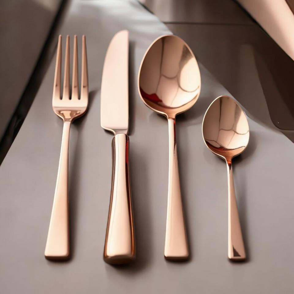 Juego de cubiertos de cocina de acero inoxidable con espejo, juego de cucharas y tenedores de color personalizado, color plateado, dorado y negro