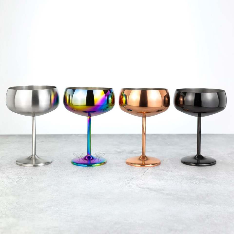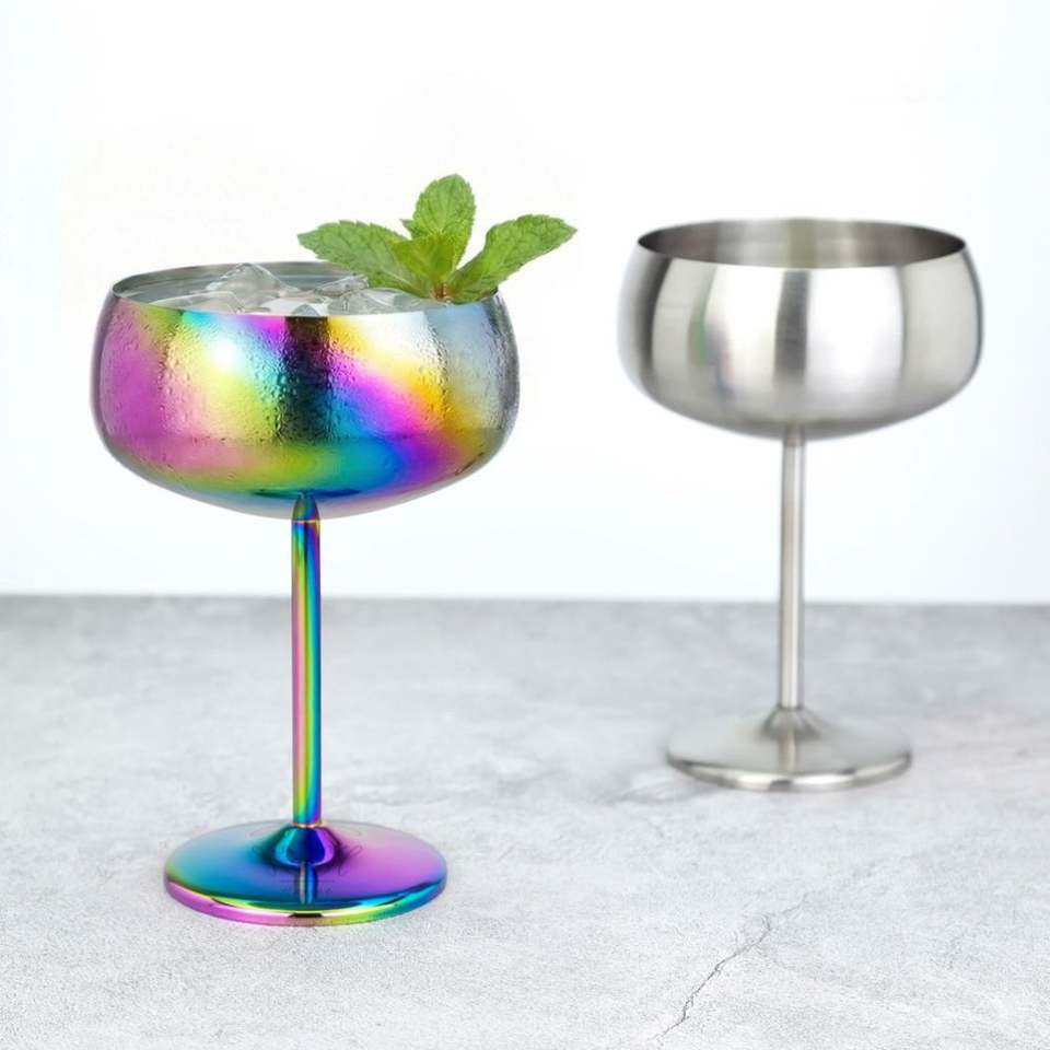Copa de Martini de Acero Inoxidable SS304 de 450 ml con Tallo Largo, Reutilizable, con Logotipo Personalizado en Color, para Bar, Copa de Champán Metálica