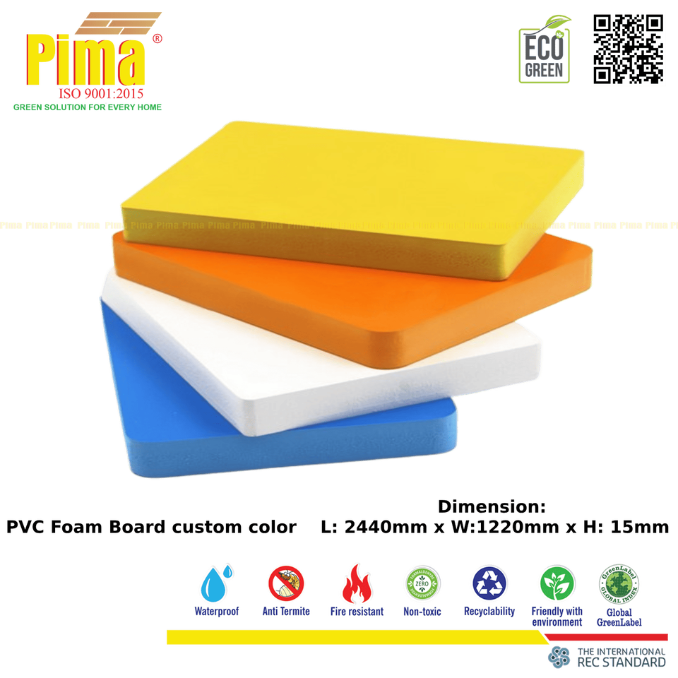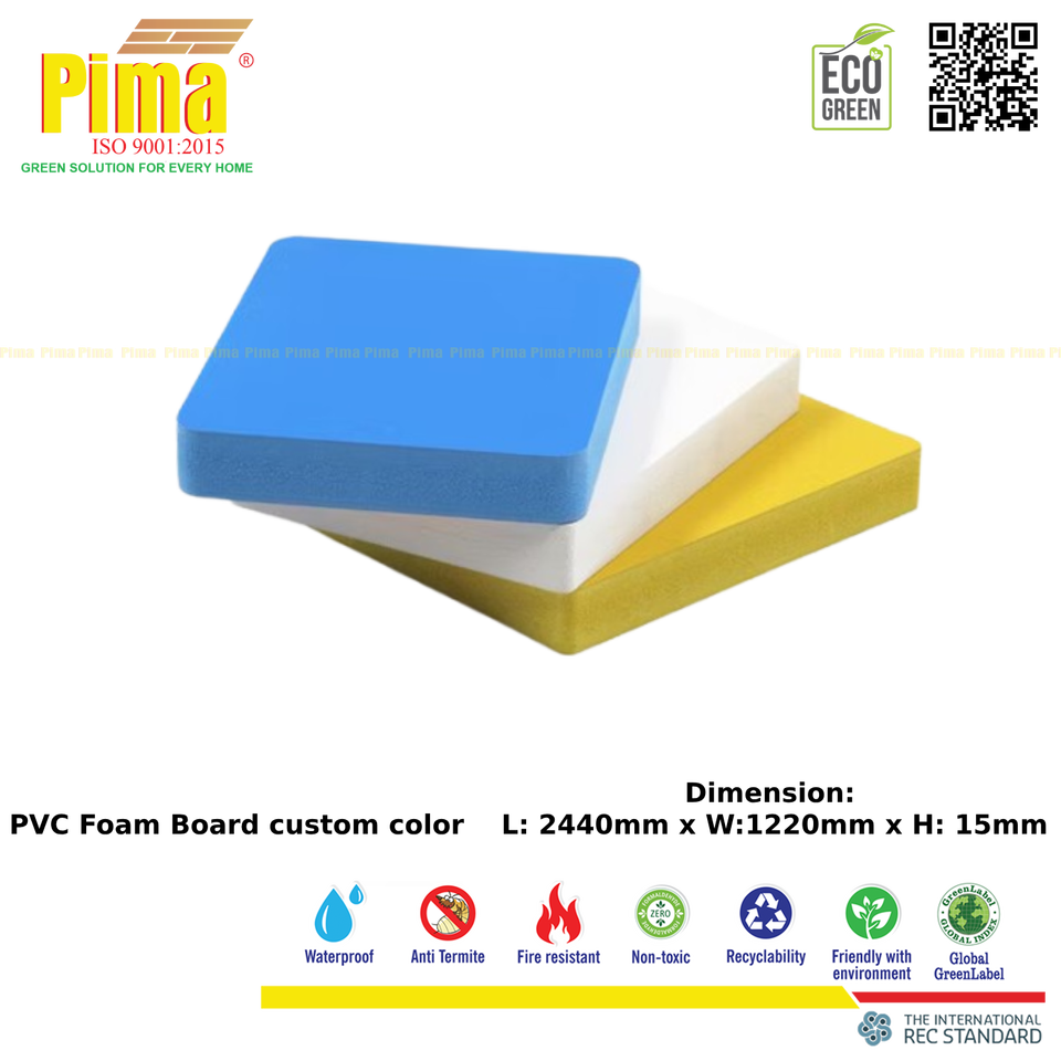Color personalizado PVC WPC hoja de tablero de espuma 0,6G/cm3 densidad 15mm espesor impermeable paneles de polivinilo para muebles de interior