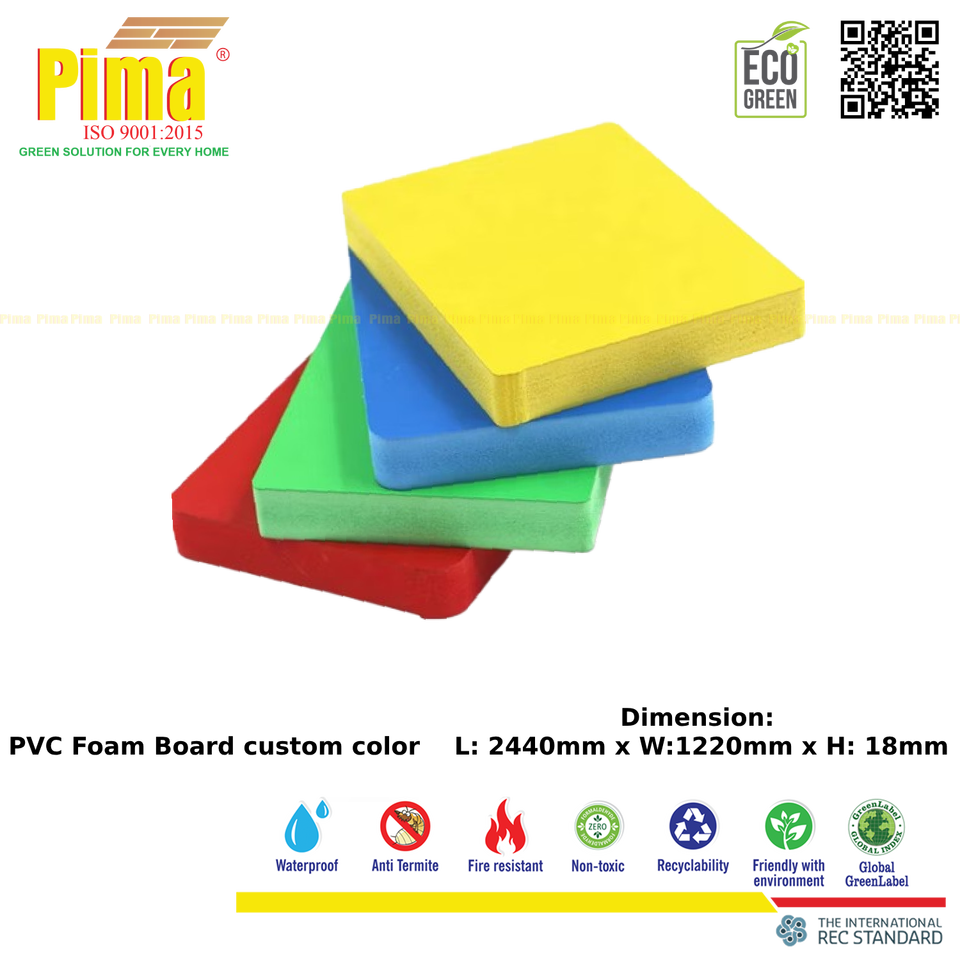 Hoja de tablero de espuma WPC de PVC de Color personalizado 18mm de espesor 0,6G/cm3 paneles de plástico liso de densidad para materiales impermeabilizantes de cocina