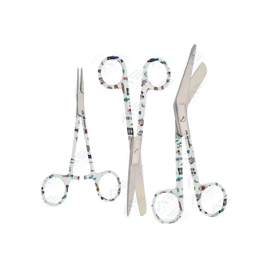 Juego de instrumentos de vestidor con patrón de impresión de Color personalizado, tijeras de enfermera de acero inoxidable, Kit de instrumentos médicos quirúrgicos manuales