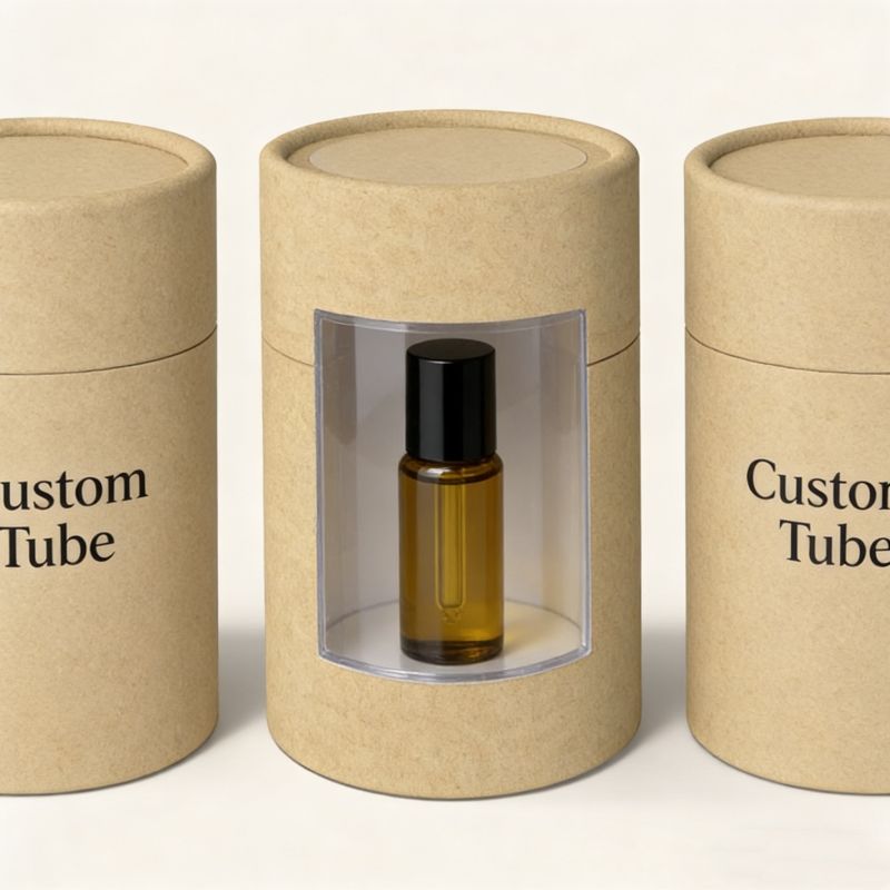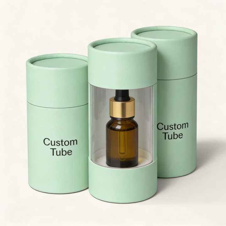 Caja de Cartón Redonda Personalizada con Logotipo Impreso en Color, Tubo de Papel Kraft con Ventana de PVC para Envasado de Aceite Cosmético