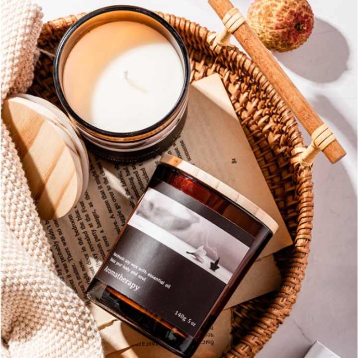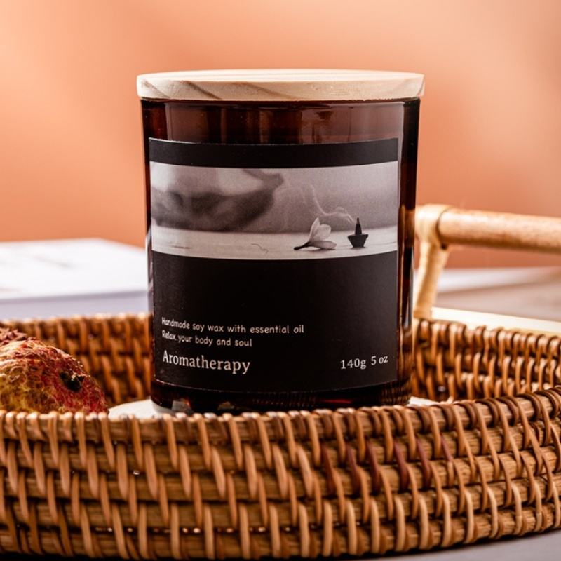 Velas de soja de lujo con etiqueta privada de color personalizado, 4oz, 6oz, 8oz, tarro de cristal mate, vela perfumada con tapas de madera