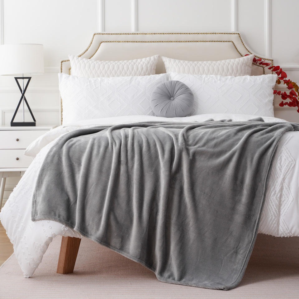 Manta esponjosa de microfibra para cama y sofá, Color personalizado, de poliéster, Sherpa, franela, Color gris, suave y acogedora
