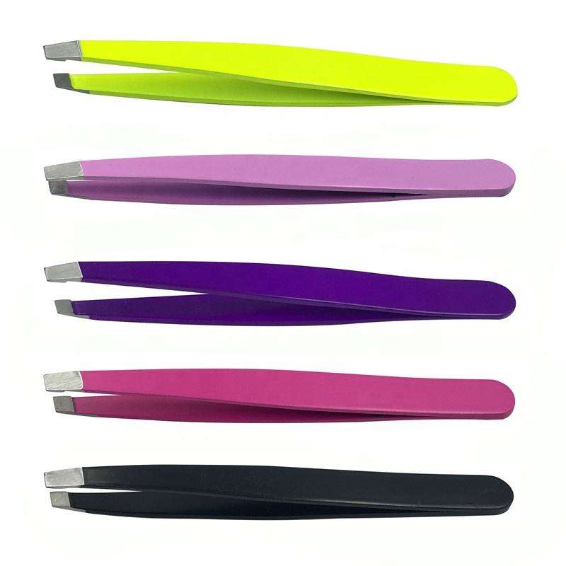 Juego de Pinzas para Cejas de Acero Inoxidable con Punta Inclinada en Color Personalizado