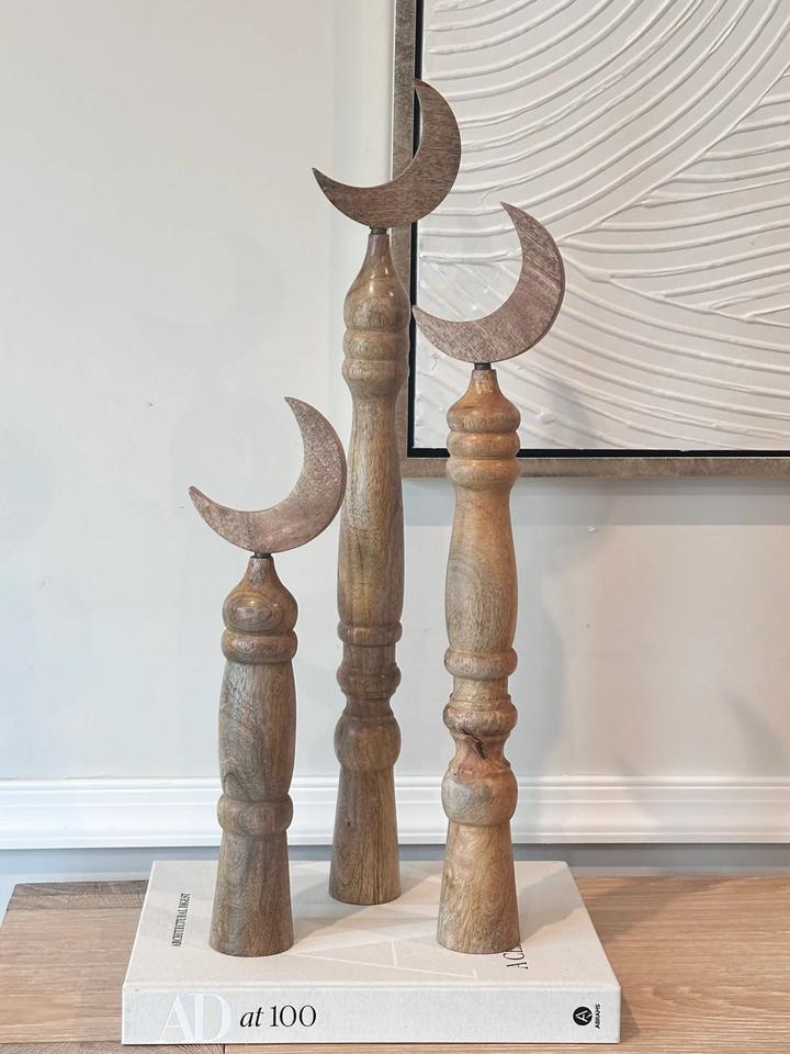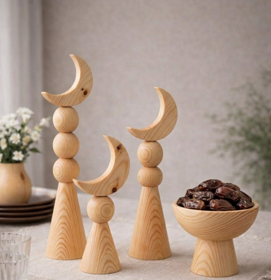 Juego de Adornos de Madera en Forma de Luna Creciente, Color Personalizado, Hechos a Mano, Decoración para Ramadán y Eid, Esculturas de Mesa, Adorno Islámico Árabe, Venta al Por Mayor