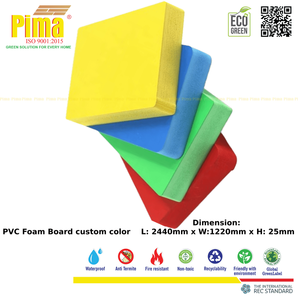 Color personalizado Wpc Pvc hoja de tablero de espuma Celuka superficie 25mm espesor 0,6G/cm3 densidad para paneles publicitarios revestimiento Interior
