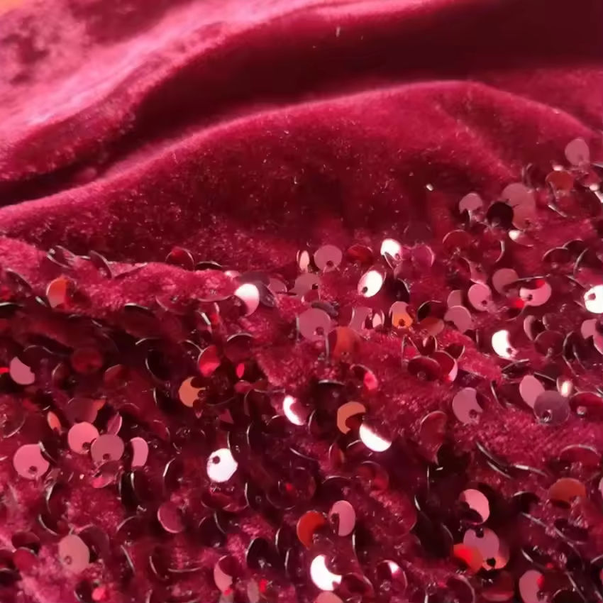 Tela de terciopelo con lentejuelas de color personalizado sobre terciopelo elástico 100% poliéster, brillante y con purpurina, para vestido.