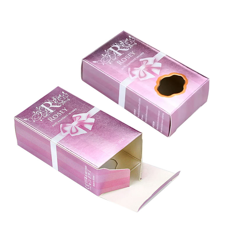 Lentes de contacto de colores personalizados, paquete ecológico recuperable, caja de papel de embalaje de extremo de pliegue inverso para lentes de contacto