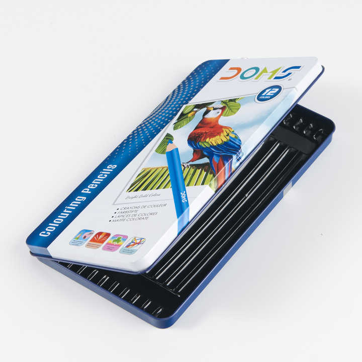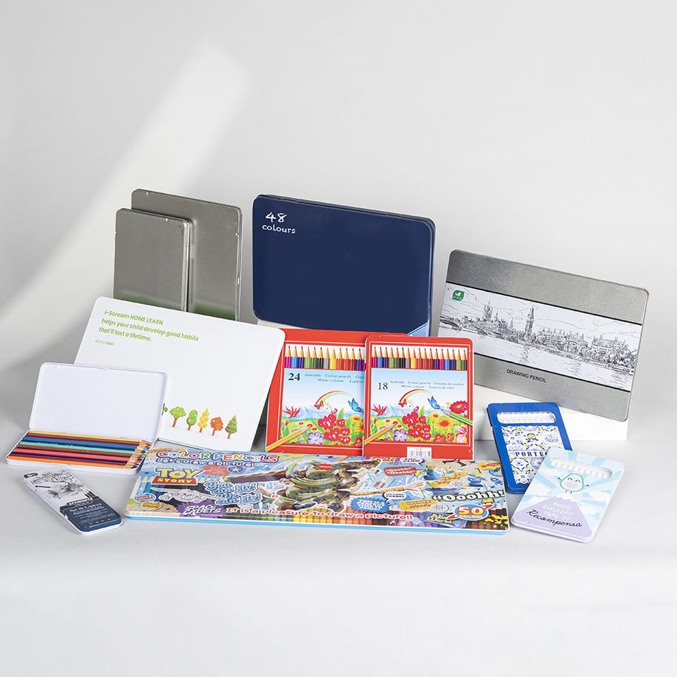 Caja de lata de lápiz rectangular de metal de color personalizado utilizada para almacenar y organizar 12 lápices de colores Bos