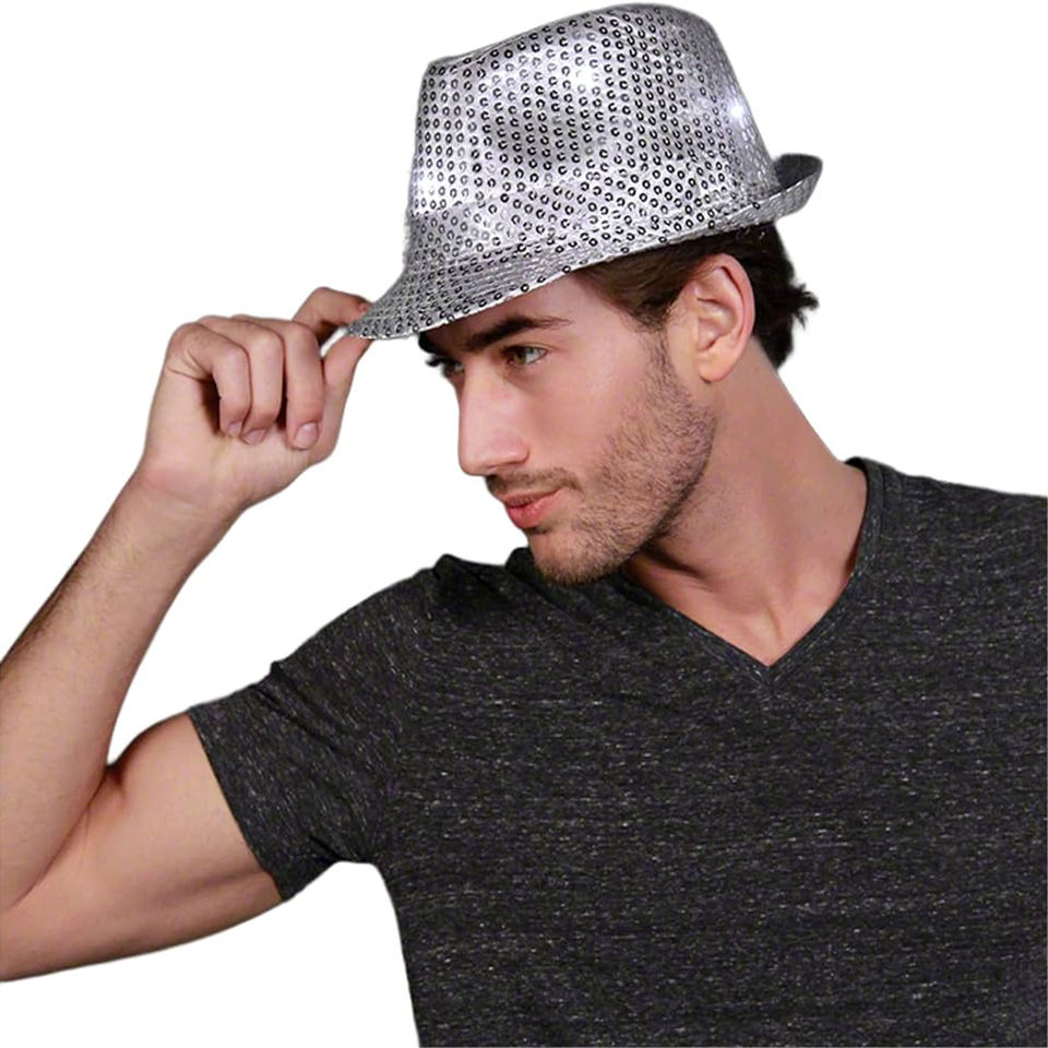 Sombrero Fedora de lentejuelas LED con brillo intermitente colorido personalizado forma redonda sombrero Pandora LED para fiestas de Diwali Navidad y Año Nuevo