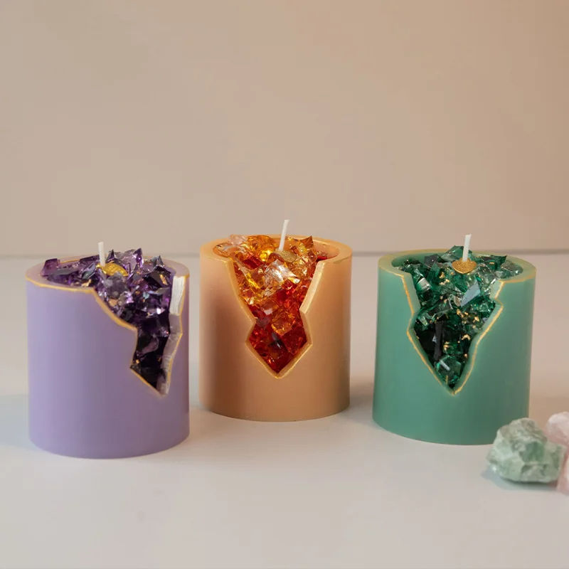 Velas de cristal curativas coloridas personalizadas, tarro de cera de soja de hoja dorada, velas aromáticas de aromaterapia de lujo